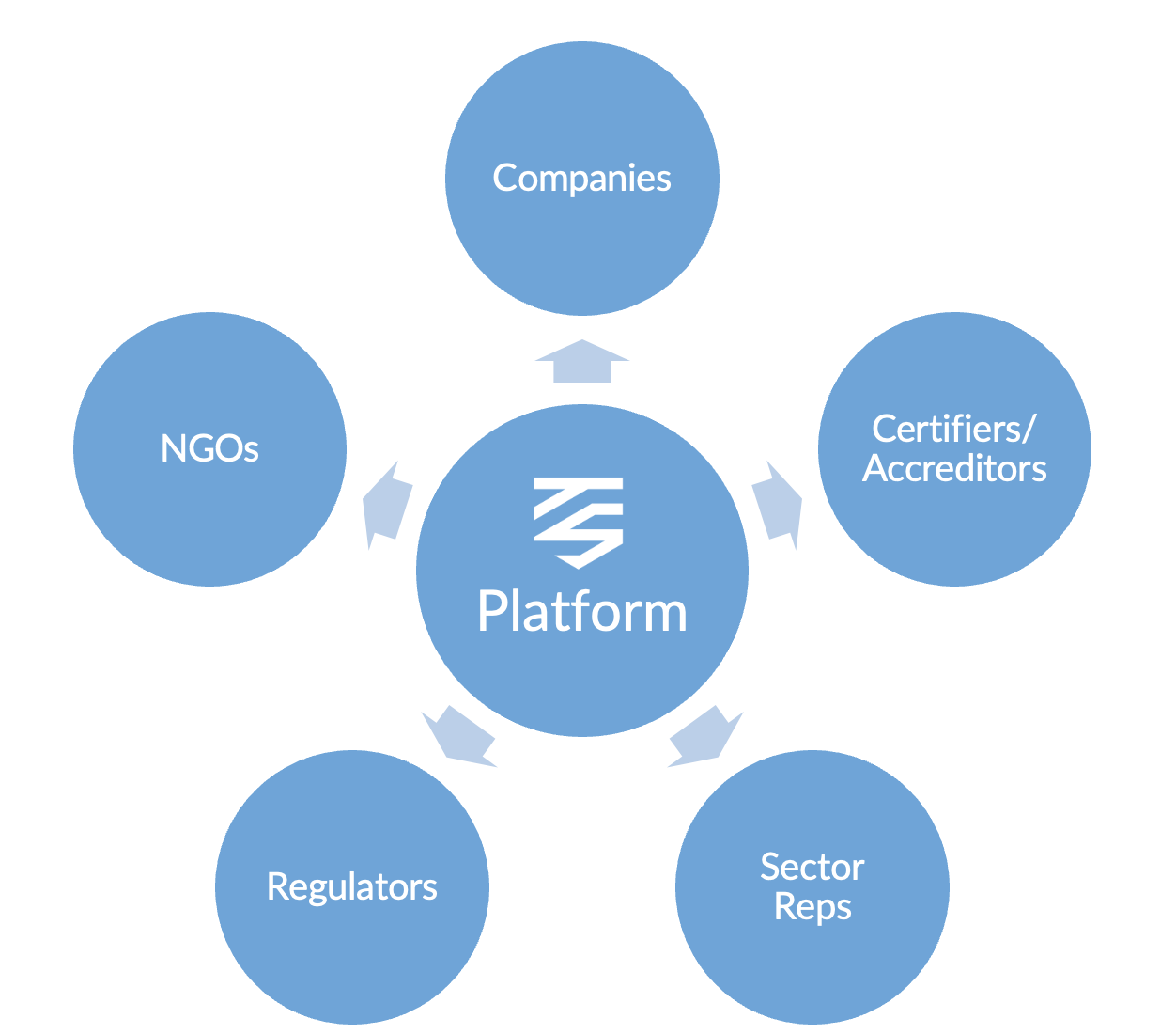 In our platform we bring companies, certifiers/accreditors, regulators, NGO's, branche representatives